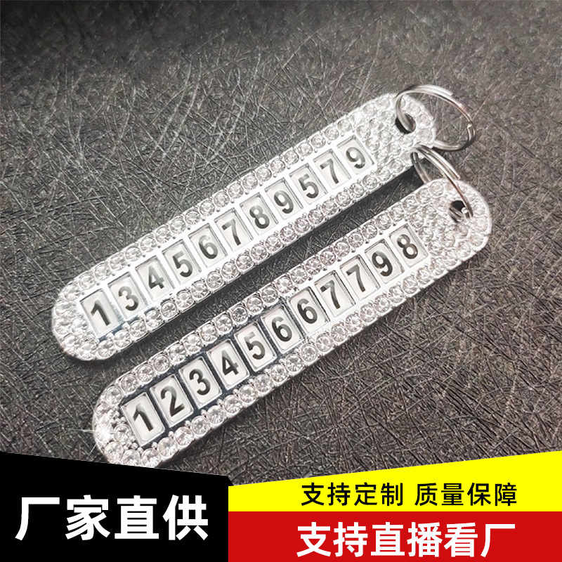 批发镶钻防丢汽车号码牌挂件钥匙扣创意宠物数字防丢牌电商小