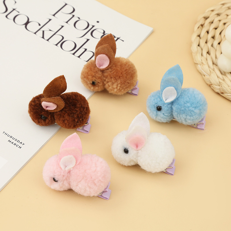 厂家批发少女可爱毛绒小兔子发夹 纯色小兔bb夹侧边夹兔子装饰