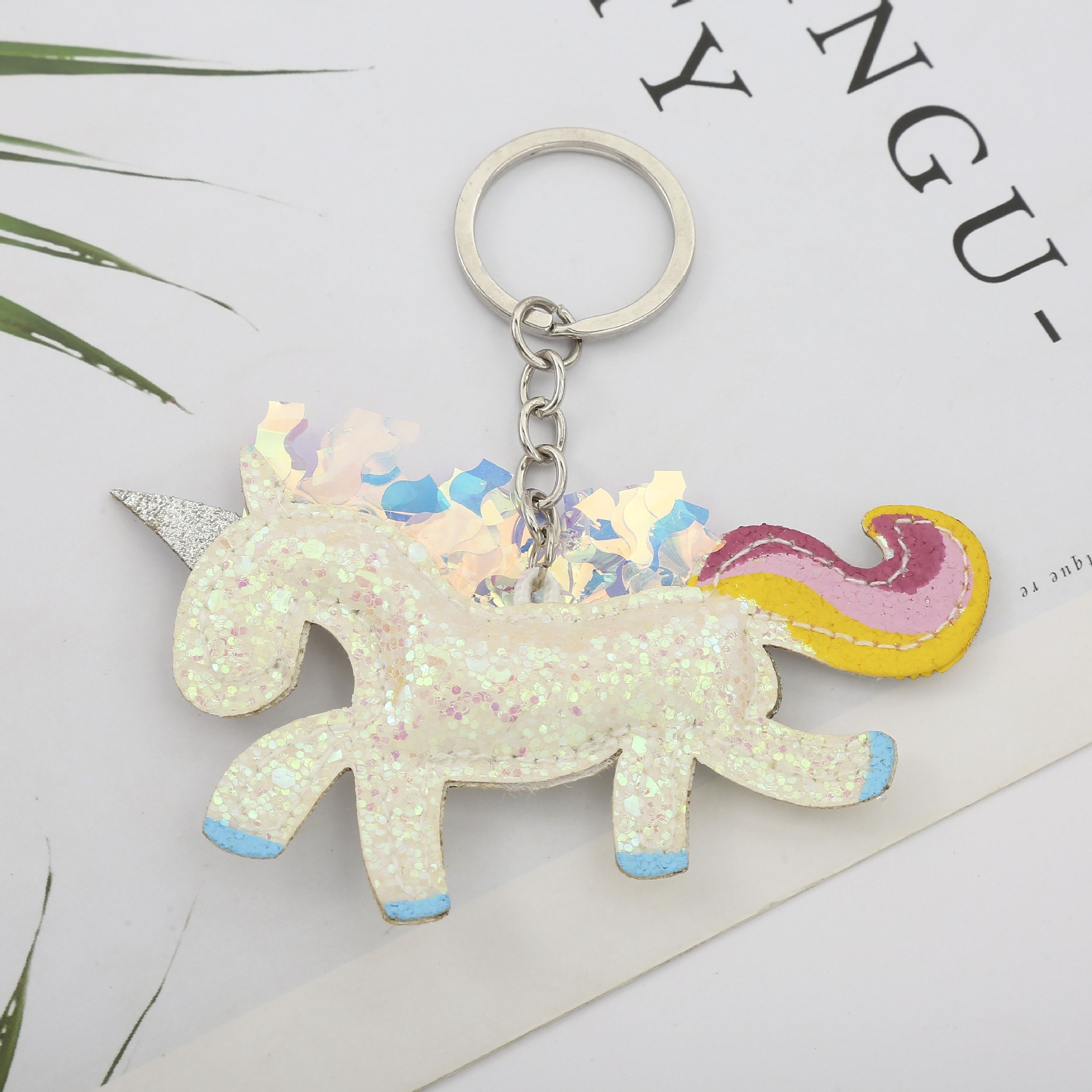 创意PU镭射少女心彩虹小马钥匙扣 可爱独角兽包包挂件卡通挂饰