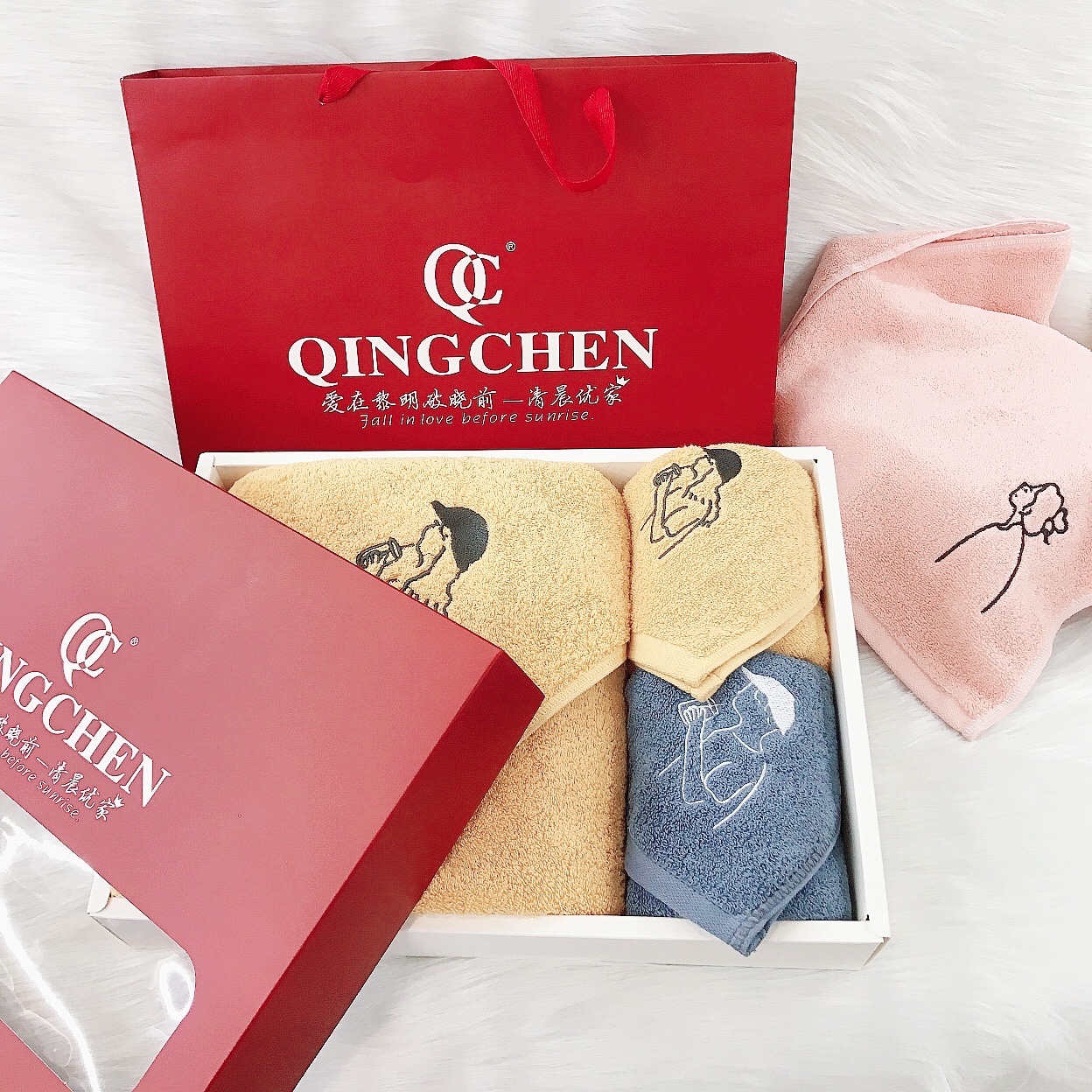 清晨优家毛巾浴巾超柔吸水擦脸家用毛巾浴巾纯棉毛巾浴巾礼盒套装