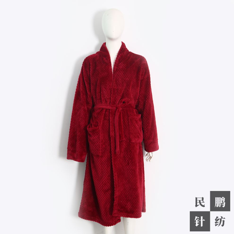 玫红色冬日加绒睡袍女 长款秋冬浴袍加厚浴衣 冬季家居服厂家直销