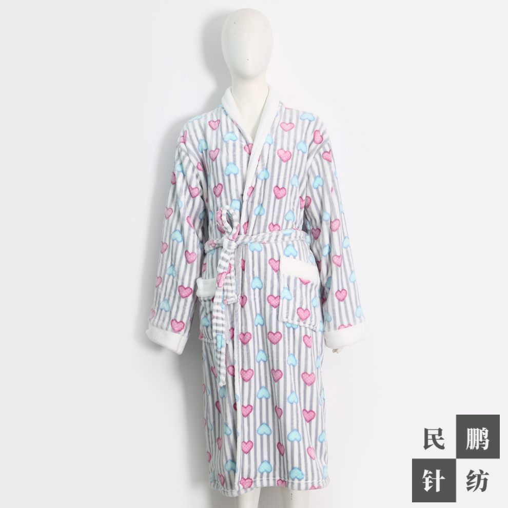 爱心图案混色时尚睡袍 女款秋冬季加长款浴袍 不易掉毛 不易掉色