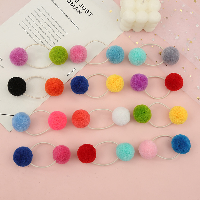 简约ins风手工毛绒扎头发高弹皮筋 儿童彩色毛球头绳糖果色发饰