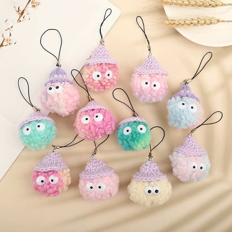 现货渐变色女巫帽毛球饰品配件 小眼睛灰尘精灵球毛绒挂件配饰