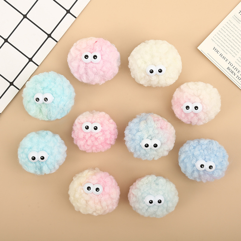 现货可爱糖果色毛球饰品配件 豆豆眼精灵毛球DIY手工毛绒挂件配饰