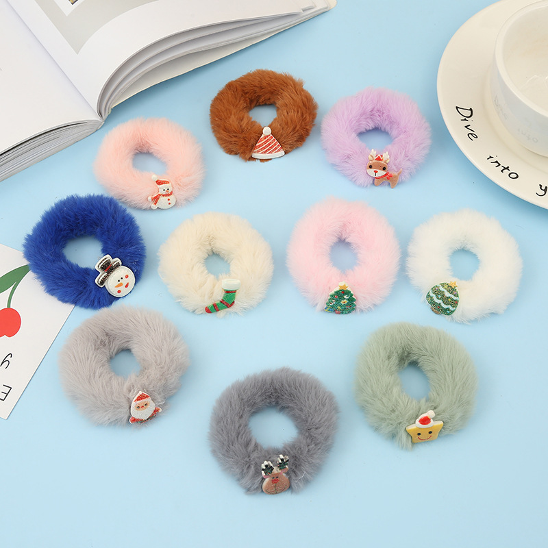 厂家新款创意圣诞毛绒发圈装饰 多款圣诞节卡通发圈雪人驯鹿头饰
