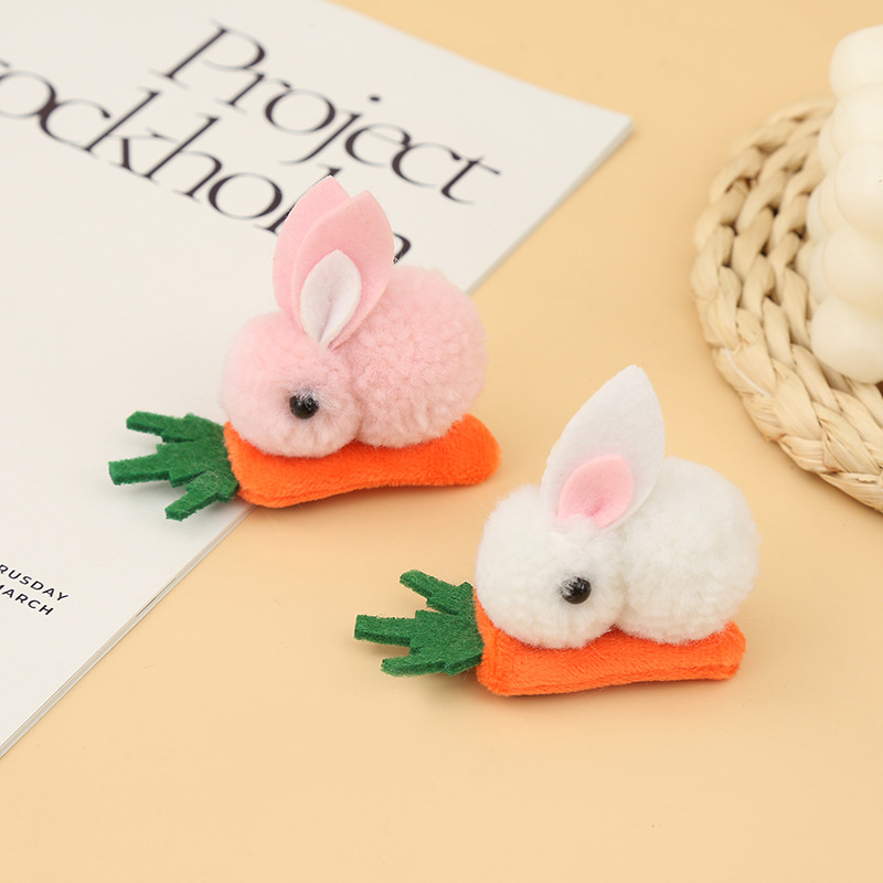 批发少女可爱毛绒萝卜小兔子发夹 纯色萝卜小兔bb夹侧边夹装饰