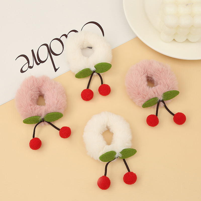 日韩风秋冬毛绒少女心樱桃发圈 扎马尾甜美樱桃毛茸茸发圈头饰