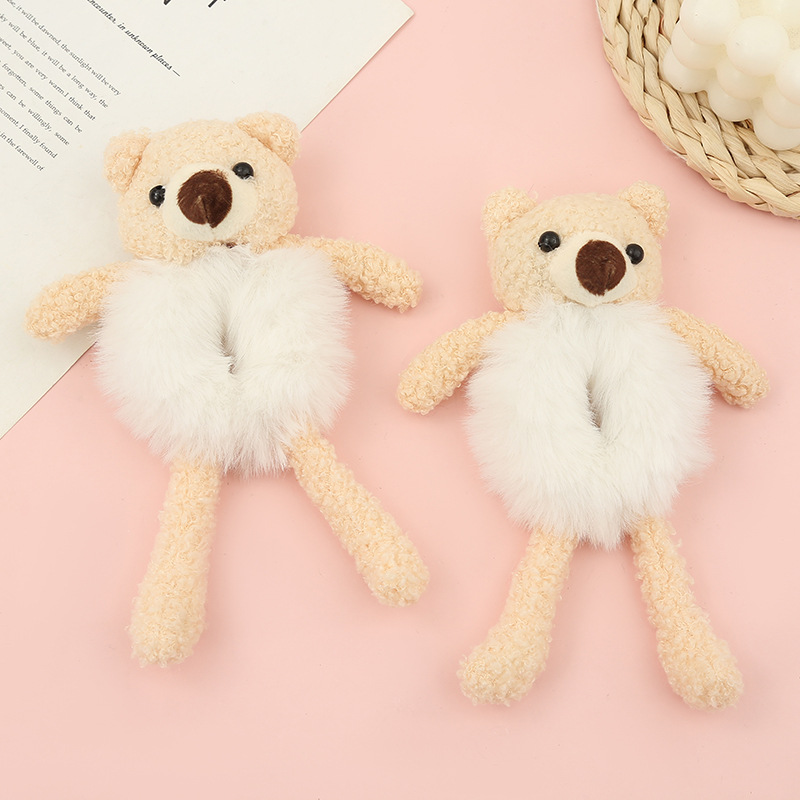 秋冬新款可爱风毛绒小熊发圈 单圈扎马尾头绳头饰 毛绒小熊头饰