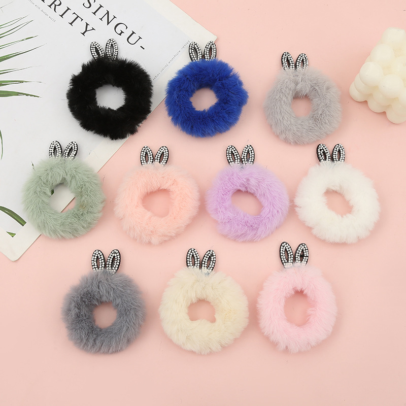 秋冬新款纯色扎头发可爱兔耳发圈 日韩甜美毛茸茸皮筋发圈头饰