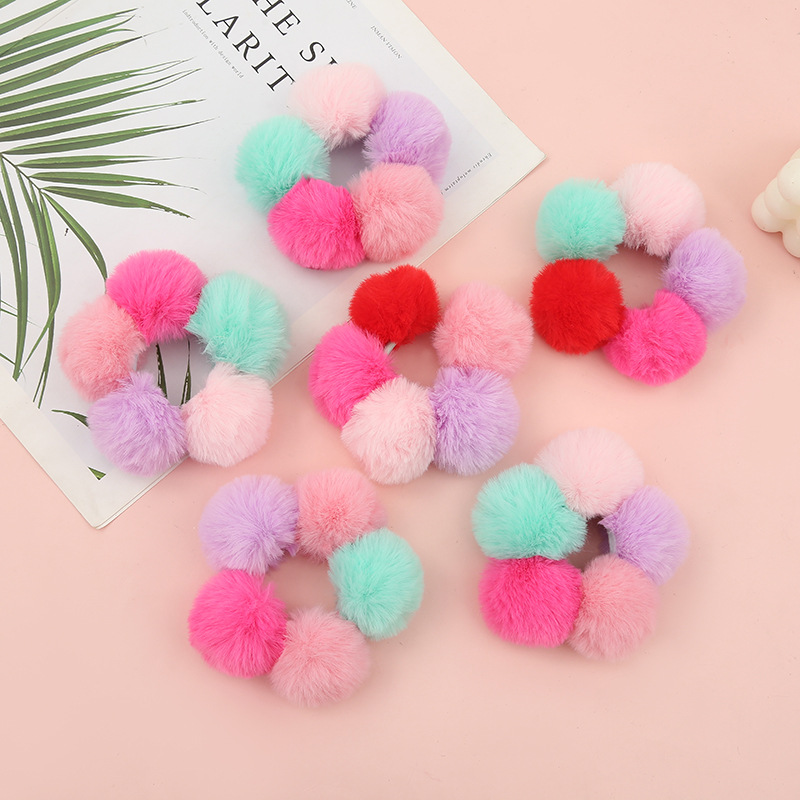 精致秋冬彩色扎头发可爱毛绒发圈 韩版小清新橡皮筋头绳毛球发饰
