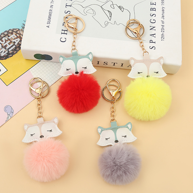 厂家直销多款PU狐狸毛球钥匙扣挂饰 仿獭兔毛毛绒包包装饰挂件