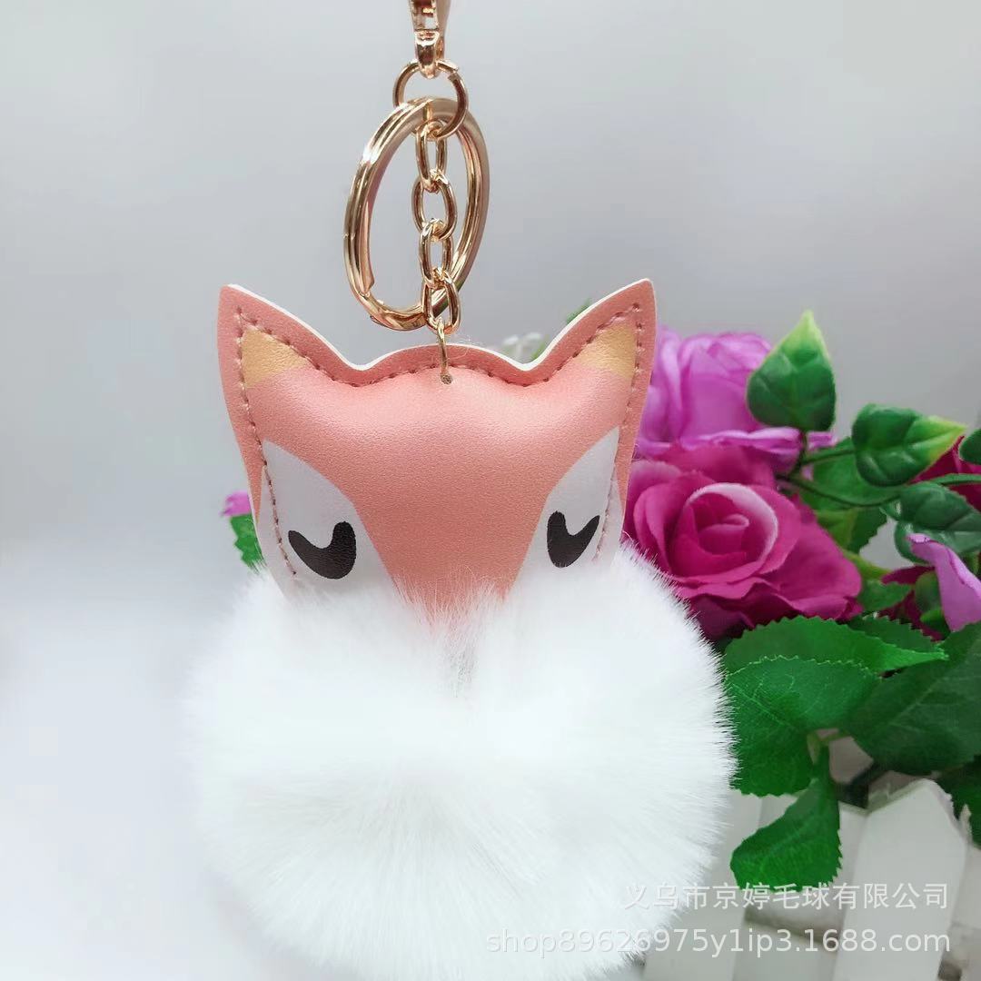 厂家直销多款PU狐狸毛球钥匙扣挂饰 仿獭兔毛毛绒包包装饰挂件