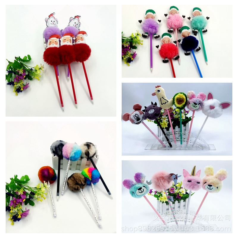 义乌定制创意毛绒球笔礼品笔创意文具卡通彩色毛球笔厂家批发