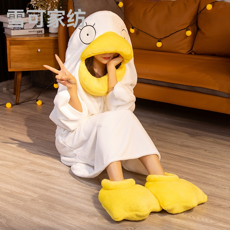搞怪网红沙雕鸭子睡衣睡袋配鸭鞋加厚法兰绒睡袍毯呆萌鸭情侣衣