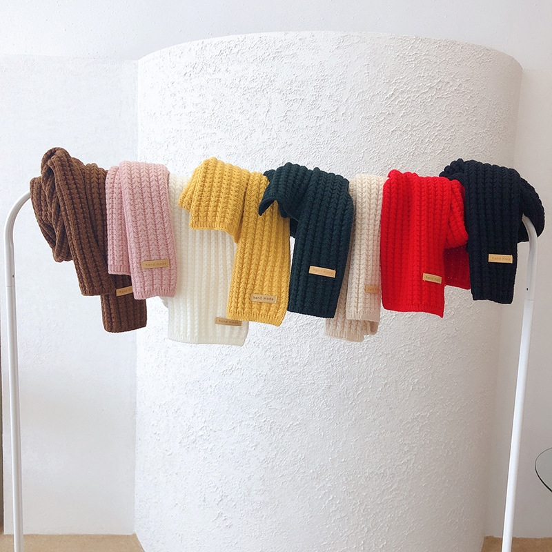 韩版纯色标签小肥花毛线儿童针织围巾百搭洋气潮流保暖男女童围脖
