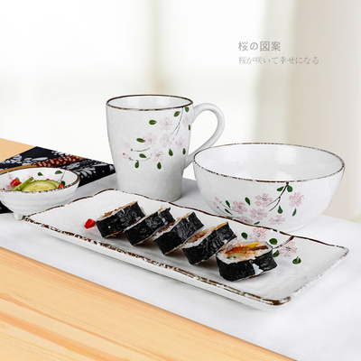 日式手绘樱花215花陶瓷碗家用米饭汤碗套装菜盘拉面碗