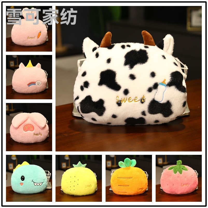 卡通动物暖手捂兔毛绒抱枕午睡枕靠垫奶牛兔耳朵冬季办公室暖手