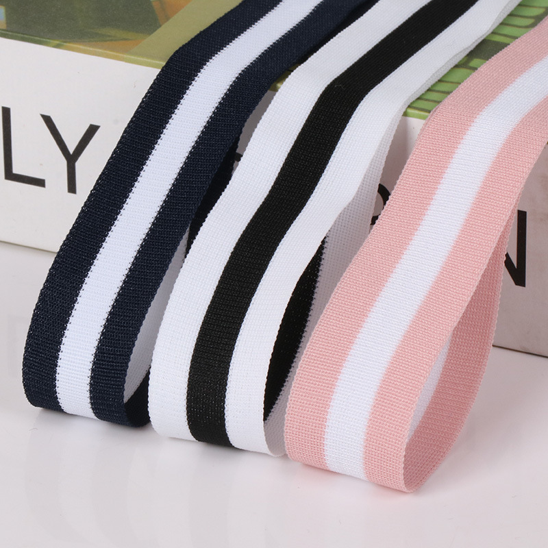 2.5cm宽 间色条纹涤纶织带 单面钩边经编针织带服装辅料厂家现货