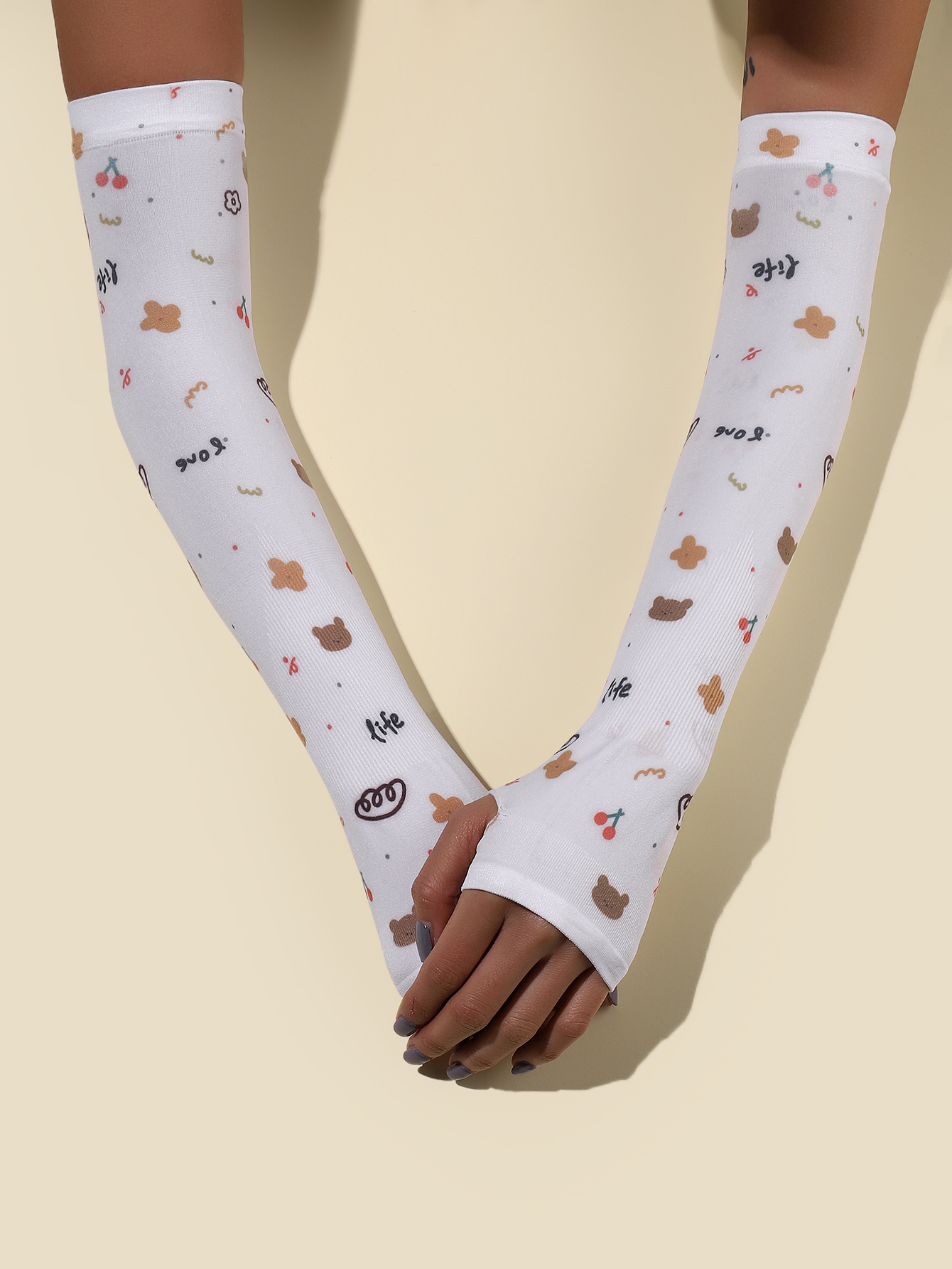 新款网红冰袖日韩系高弹力数码印花冰袖爆款带手指男女通用袖套