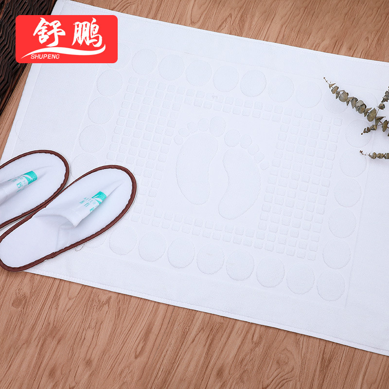 地巾 卫生间纯棉客房浴室防滑垫提花白色吸水加厚酒店用品地巾