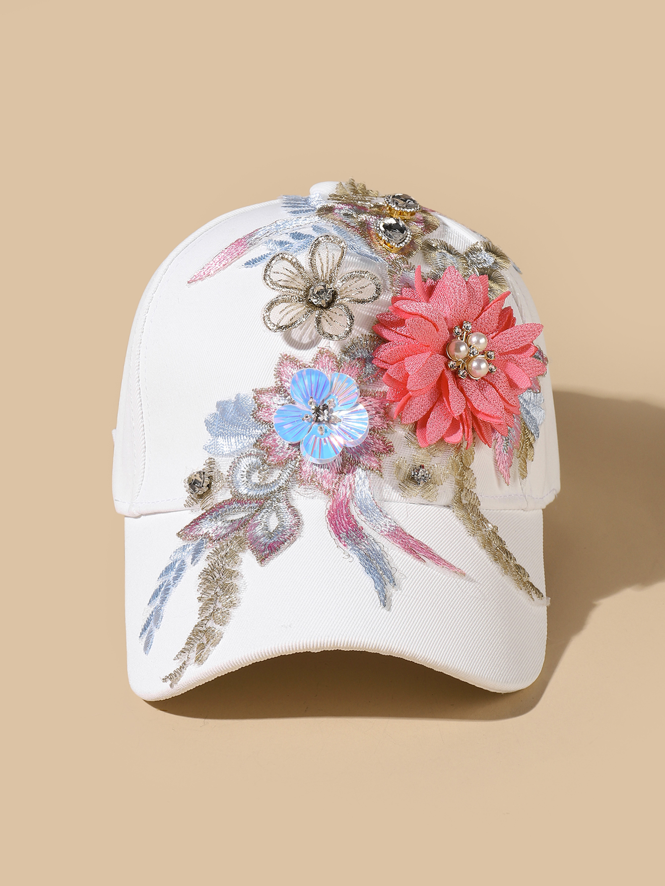 重工艺蕾丝刺绣立体花网纱遮阳帽夸张个性女棒球帽子
