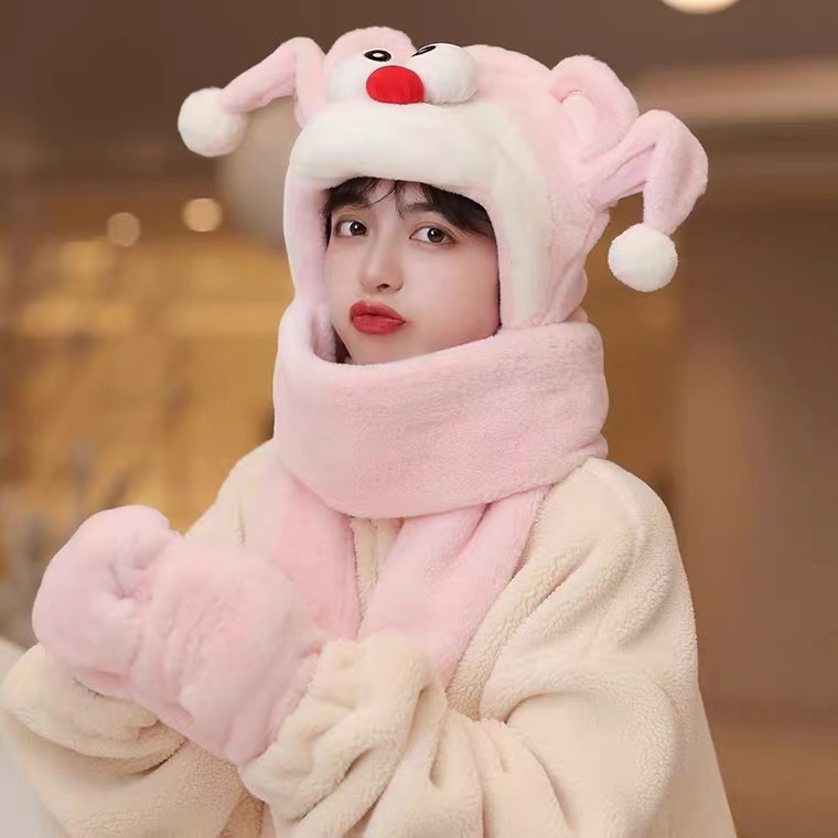 耳朵会动卡通小丑帽子围巾一体女士卖萌保暖加绒加厚冬季包头护耳