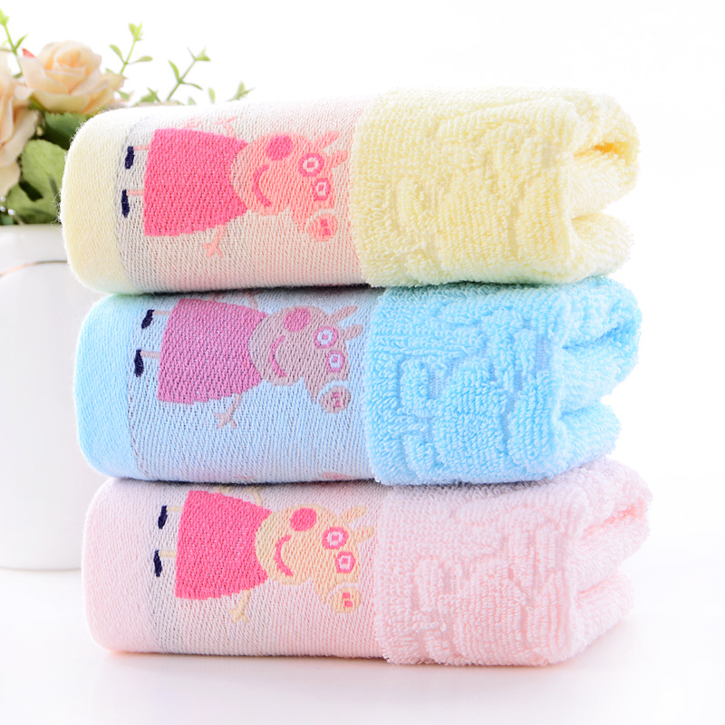 彩星厂家批发卡通小猪创意棉32股童巾儿童小毛巾吸水加厚礼品毛巾