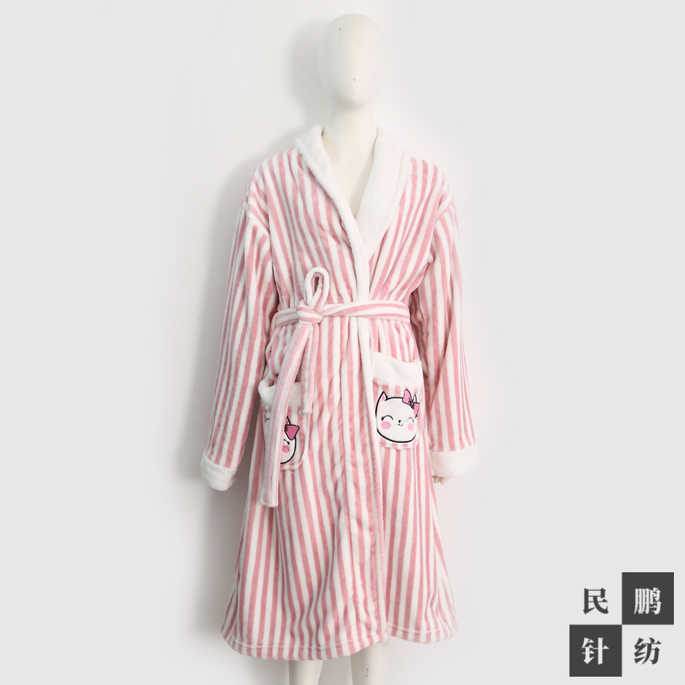 长款家居服晨袍 条纹双色秋冬季成人款情侣睡袍睡衣 加厚加绒浴袍