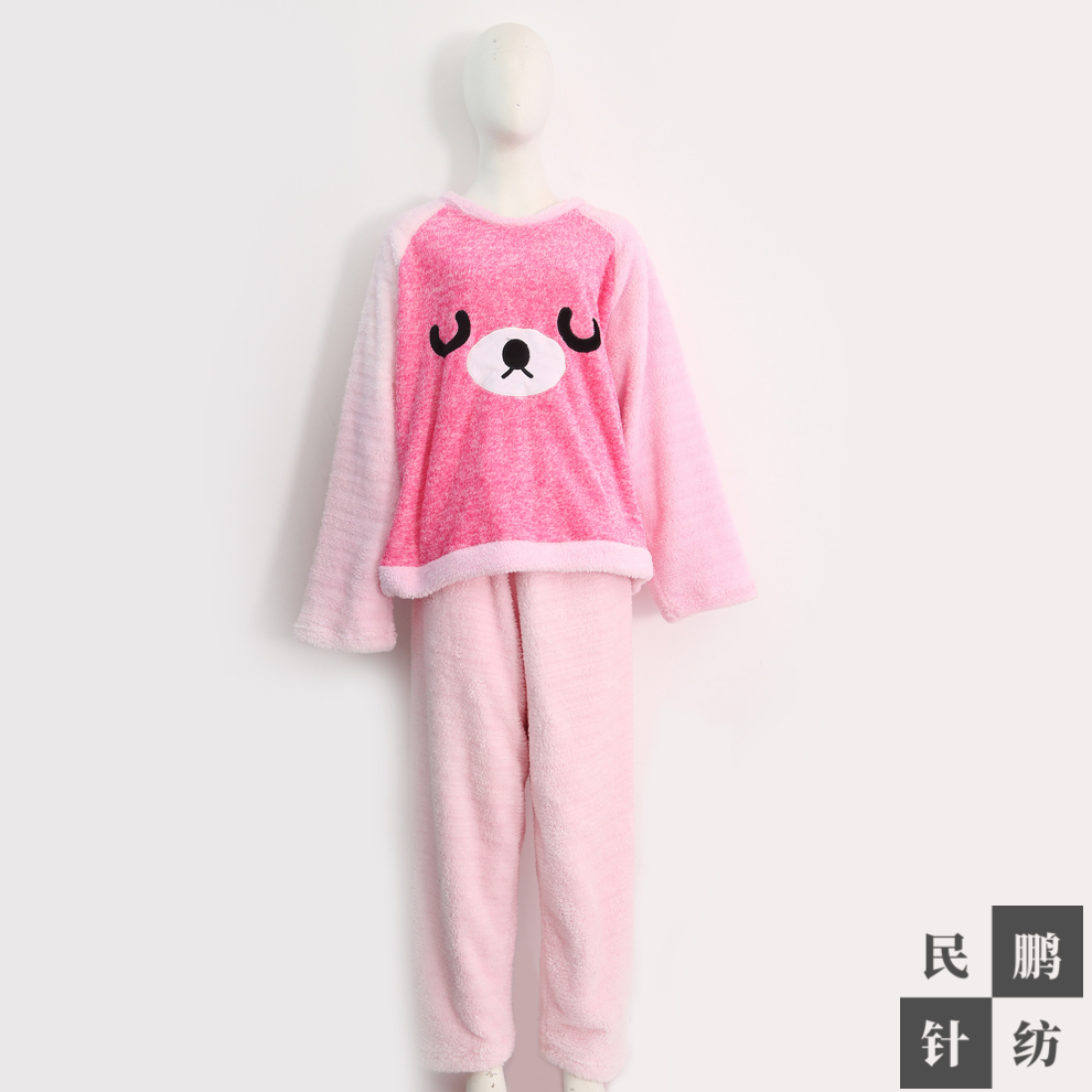 卡通熊图案秋冬季珊瑚绒睡衣女 冬款加厚加绒可爱家居服 厂家直销