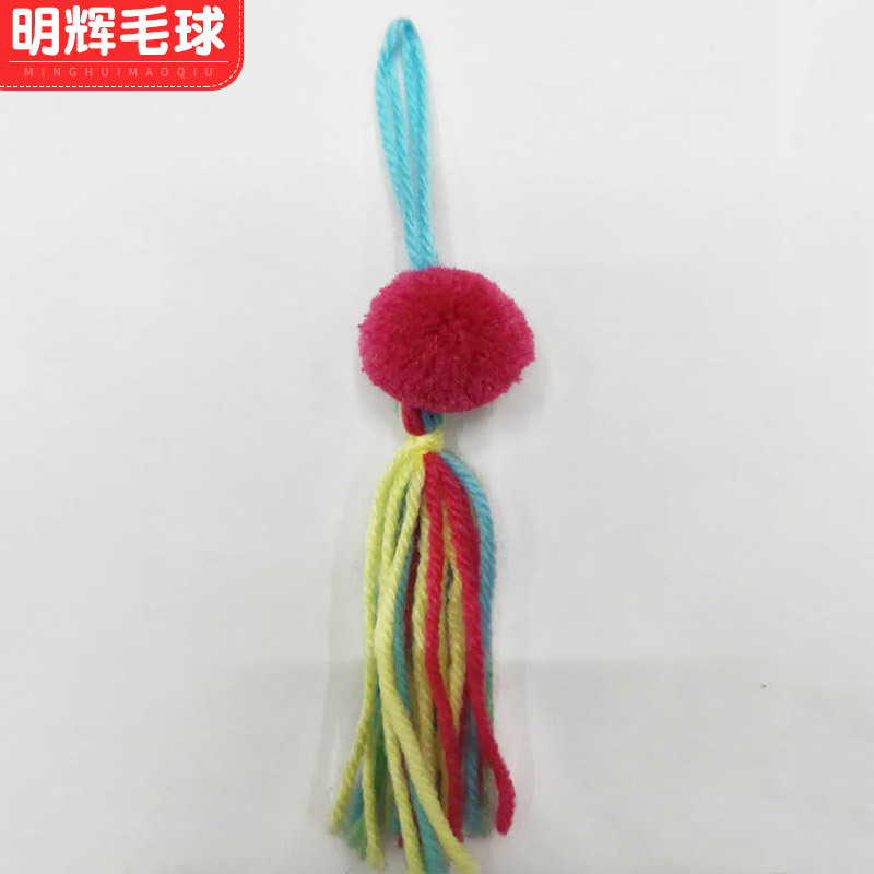 供应毛球挂件 包包挂件手工DIY彩色毛球挂件 穿球毛线流苏钥匙扣