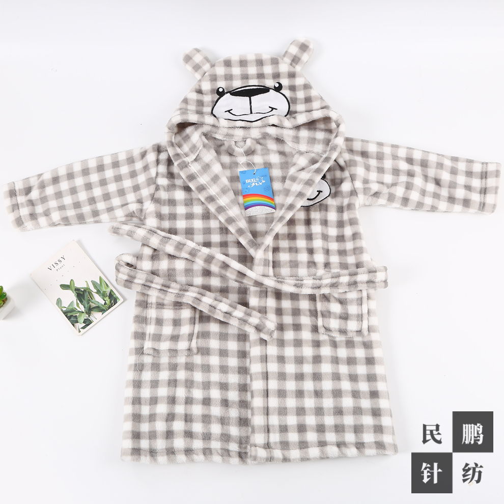 儿童卡通熊连帽睡袍 法兰绒可爱珊瑚绒睡衣 秋冬季居家舒适浴袍