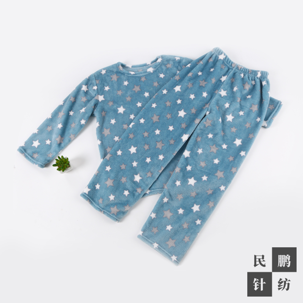 2022儿童珊瑚绒睡衣 秋冬儿童法兰绒保暖家居服 五角星图案保暖衣