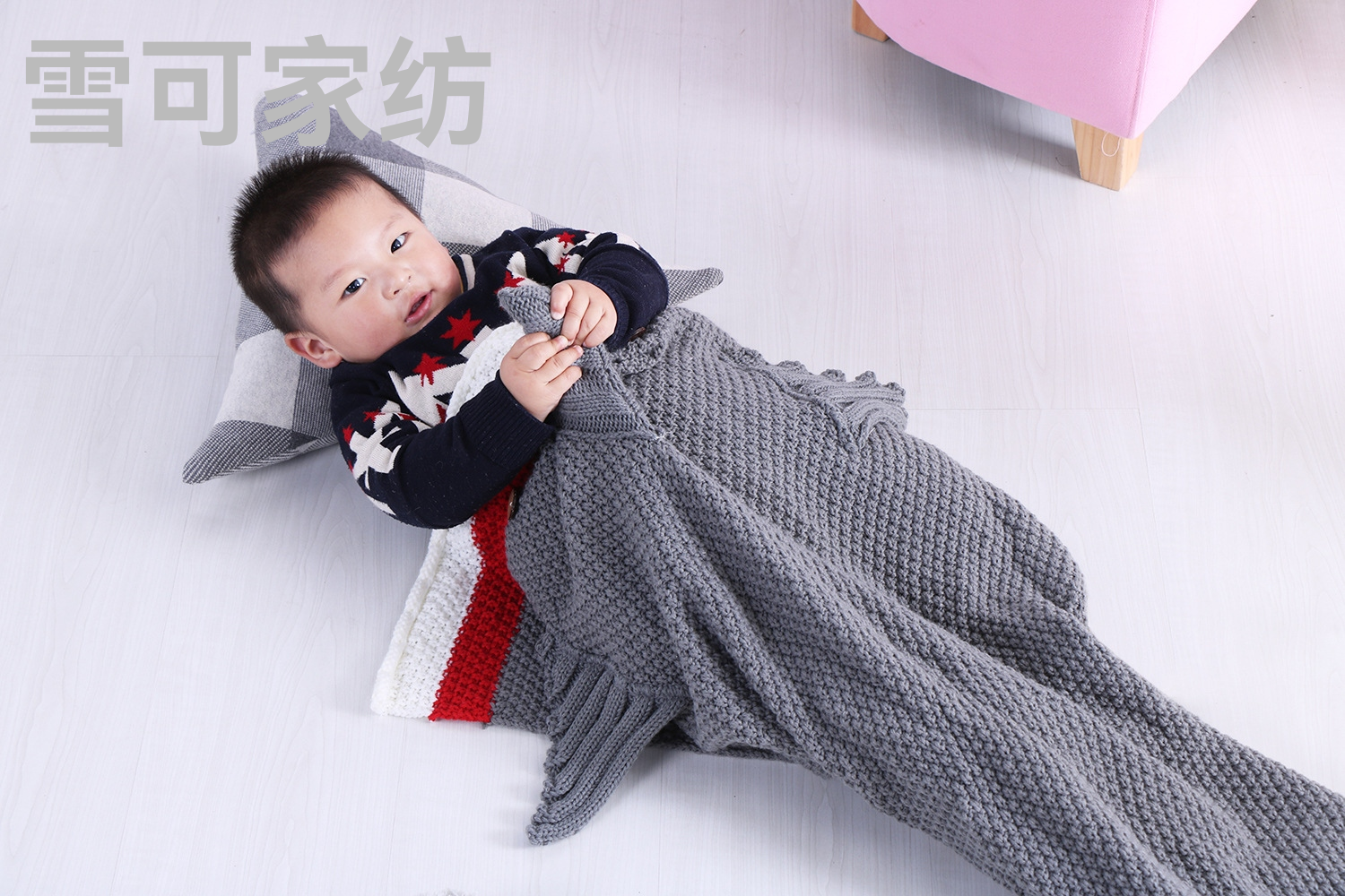 针织儿童鲨鱼睡袋针织毯美人鱼毯青少年70*130cm