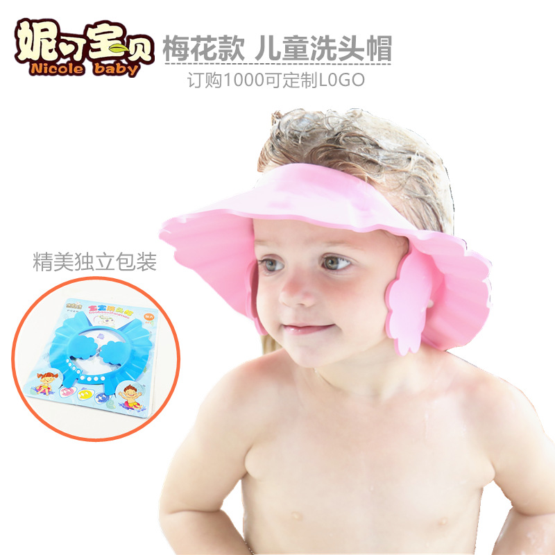 顽皮部落 宝宝洗头帽带护耳浴帽儿童洗发帽母婴儿用品批发可调节