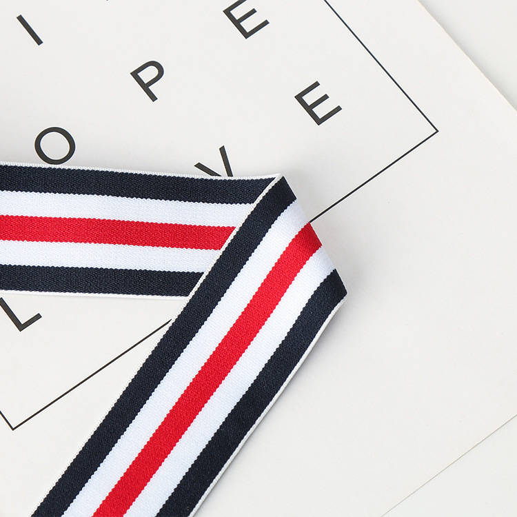 厂家直销针织条纹间色织带弹性松紧带服装裤子弹力带 白黑红5.0CM