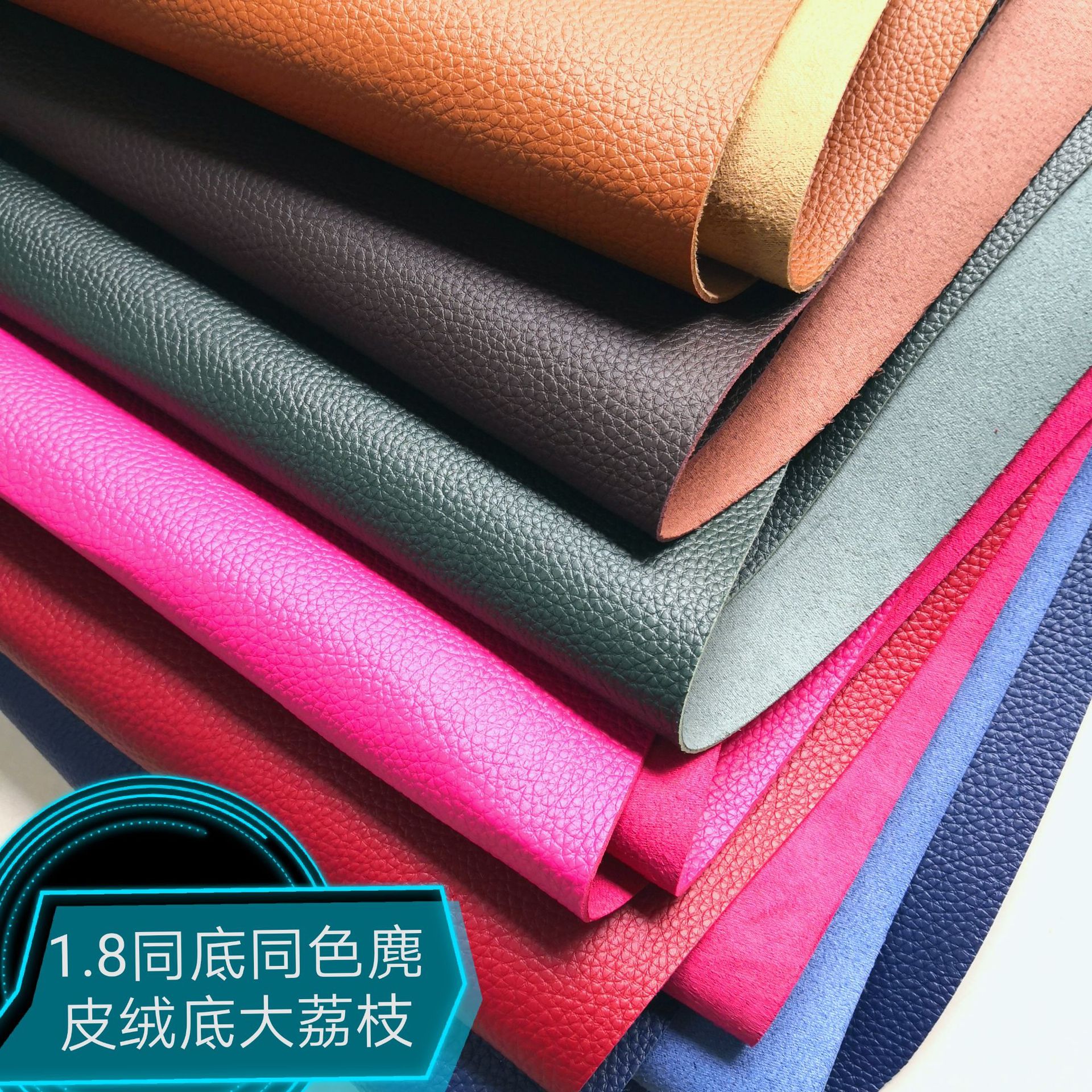 1.7麂皮绒底PVC人造革荔枝纹皮革面料箱包桌垫鼠标垫皮料批发
