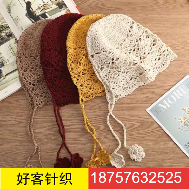 萝莉帽甜美渔夫帽日系头巾包头帽帽子女韩版棉线钩织复古宫廷公主