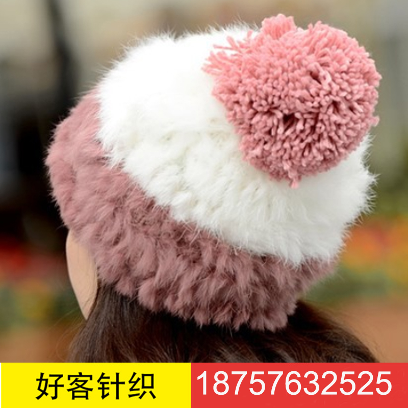 双色针织帽子手工编织可爱护耳帽手工编织秋冬季韩版保暖兔毛皮草