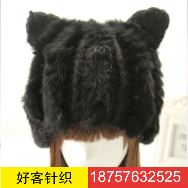 帽子秋冬季保暖女士韩版针织护耳帽手工编织可爱熊猫耳朵兔毛皮草