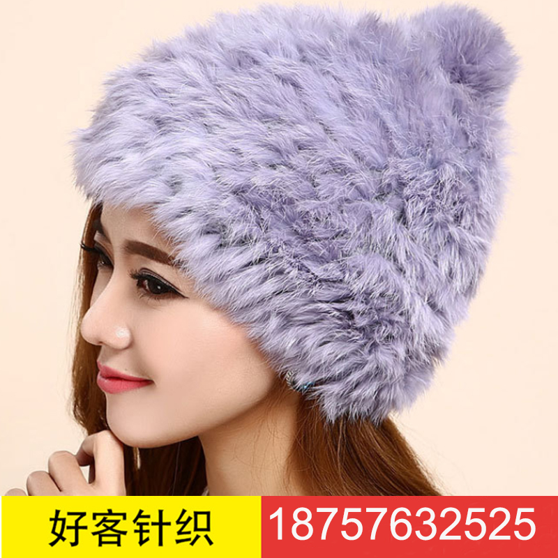 保暖淑女气质型针织帽兔毛球皮草帽子新款韩版帽子女季