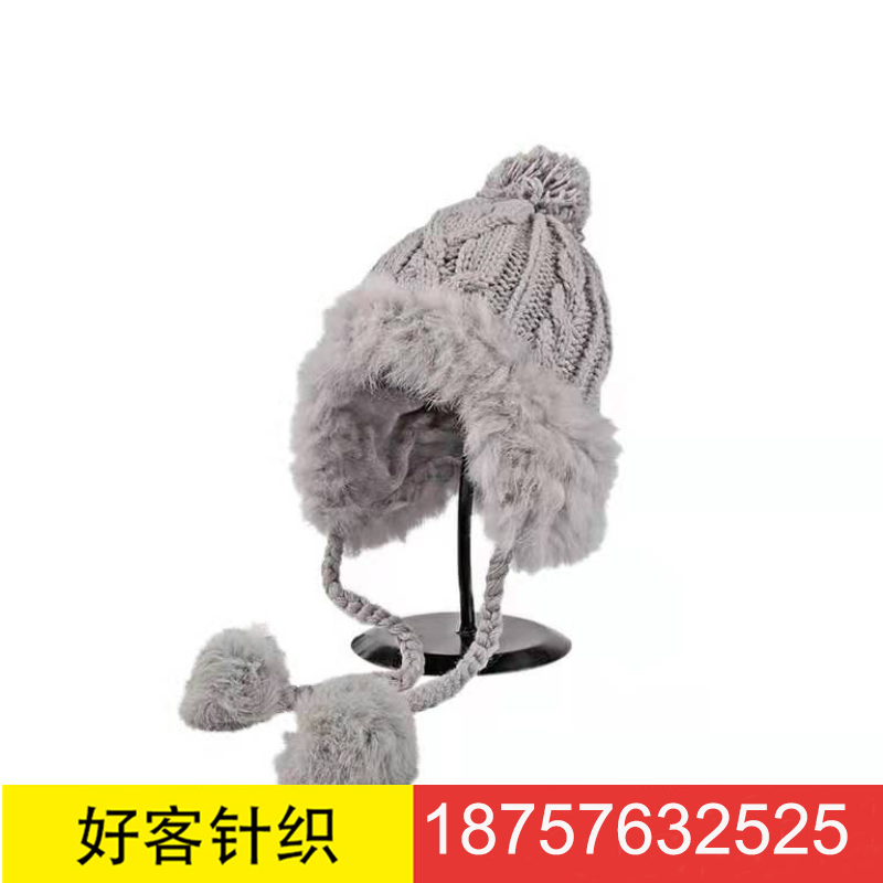 韩版甜美可爱毛球护耳加绒保暖针织帽潮兔毛雷锋帽子女