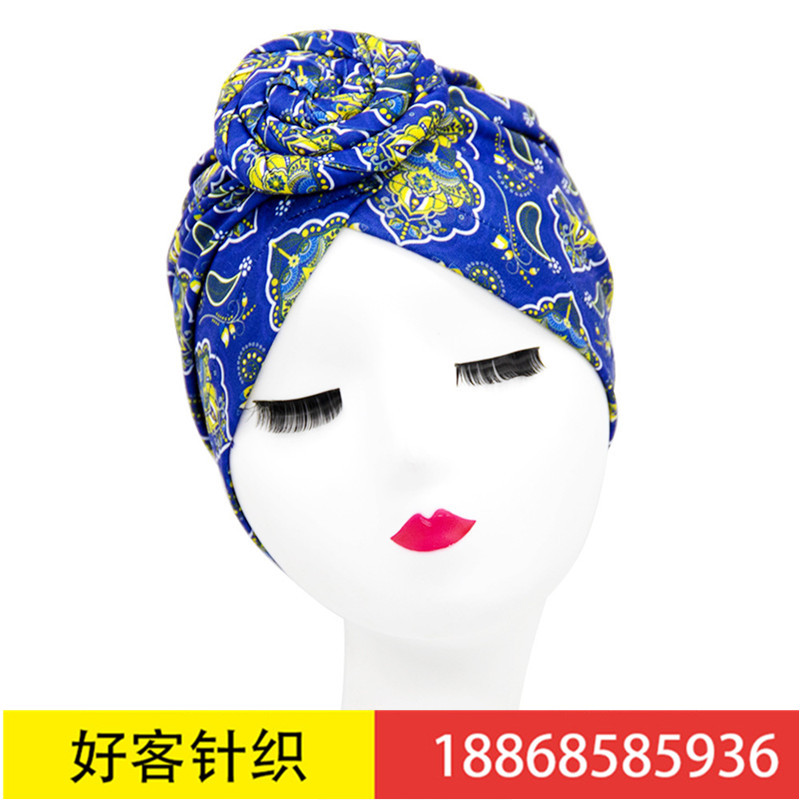 亚马逊热卖波西米亚印花盘花头巾帽 打结帽 化疗帽 时装帽