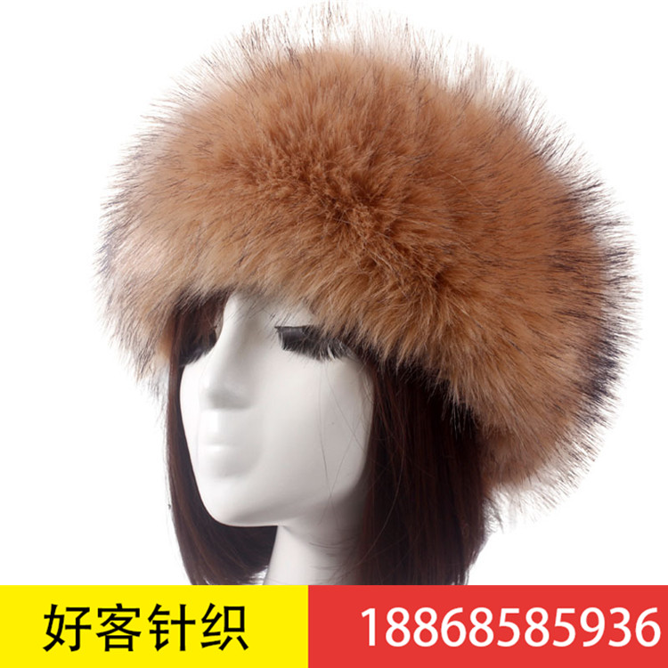 秋冬仿皮草加厚帽子无空顶帽保暖帽圈头套时尚狐狸毛毛绒无檐帽女