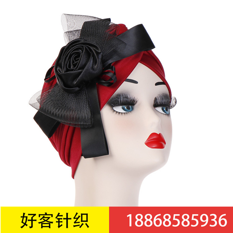 欧美流行花朵印度帽网纱蝴蝶结穆斯林头巾帽亚马逊热卖简便装饰帽