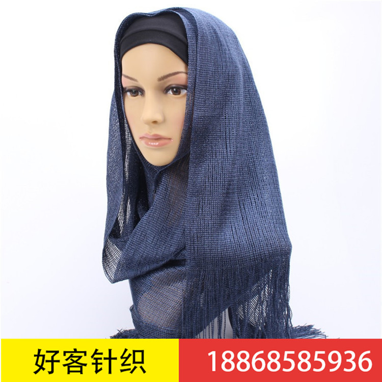 外贸纯色穆斯林女士包头头巾阿拉伯亮丝围巾带须女头巾