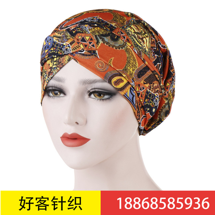 非洲欧美印花花布头巾帽_前额交叉睡帽穆斯林包头帽亚马逊热卖
