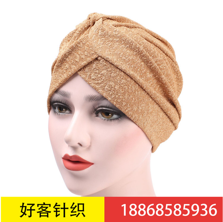 亚马逊新款欧美撒金布纯色简便穆斯林包头帽印度帽8色