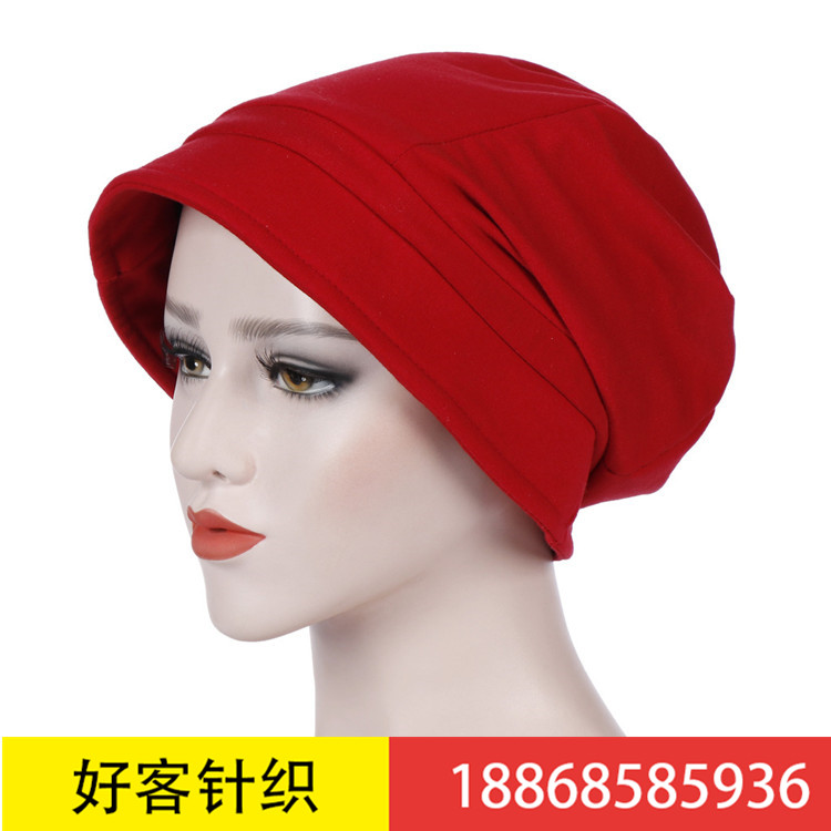 速卖通新款棉质大檐套头六角帽穆斯林头巾帽纯色装饰帽遮阳帽
