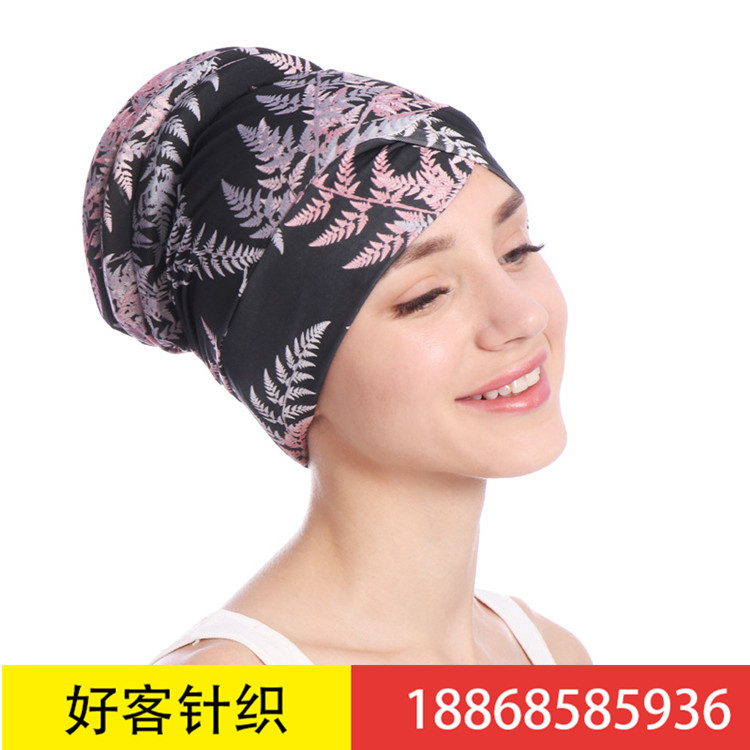 速卖通新款小碎花头巾帽树叶穆斯林棉质化疗帽后盘发包头帽现货